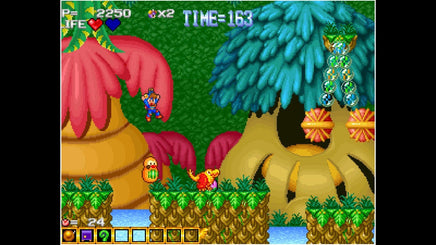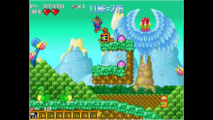 In the game the player controls a heroic young man named Blue who was sent by Princess Fa to save the peaceful planet of Raguy. The planet is inhabited by insect people (Insectarians) and Blue is in love with the Princess Fa. It has been invaded by the evil Daruma Empire, who plans on consuming the planet's resources and polluting it.