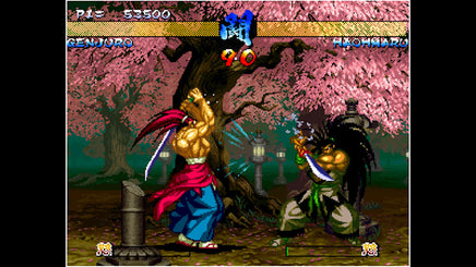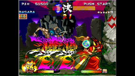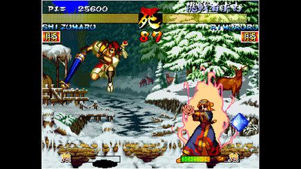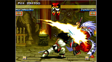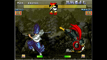 Also, the button layout was changed, mapping the first three of the four available buttons to weak, medium and strong slash attacks, respectively. The fourth button was used for kick attacks, presumably to de-emphasize kicks in favor of the sword strikes.