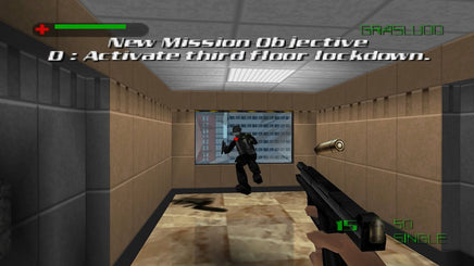Based on the 1999 movie starring Pierce Brosnan as renowned secret agent James Bond, The World Is Not Enough is a first-person shooter that spans 14 levels, each with multiple objectives. Using an array of special gadgets and weapons, you must thwart a terrorist attack on MI-6 headquarters, free hostages held inside an underground train station, and complete various other goals as you try to find and confront the man or woman behind all of this mayhem.