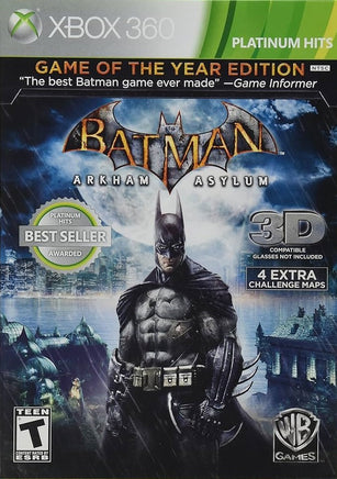 When Gotham's Caped Crusader clears the city's streets of the criminal collateral, the gritty Arkham Asylum grows a little more crowded. Here in Gotham's psychiatric hospital for the criminally insane, dangerous figures from Batman's past reside, biding their time. And when Batman becomes trapped inside the walls of Arkham, the Joker and a host of other notorious villains aren't about to let him escape without a fight for his life.Batman: Arkham Asylum takes you inside the sinister confines of Arkham and gives you free rein to explore the infamous island for the first time. Assume the role of Batman, relying on your wits, strength and arsenal of gadgets to foil a demented scheme cooked up by the Joker. Cling to the shadows, employing the utmost stealth to help you hunt down Gotham's most notorious villains without being seen. The Game of the Year Edition features four extra challenge maps not included with the original release. An innovative new technology lets you explore the feared hospital and fight Gotham's greatest villains in 3D. Face off against an array of enemies, including Harley Quinn, Victor Zsasz and Killer Croc, and do your best to unlock the secrets that shadow Arkham — before you become the next victim.