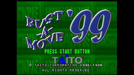 Bust-A-Move '99 features six different game types: Arcade, Multiplayer, Challenge, Win Contest, Collection, and Edit Mode. "Arcade" has you choosing one of three difficulty levels, a character, and whether you are competing against yourself, the computer, or a friend. The object is to advance through a specific number of rounds until the game is complete.