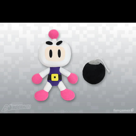 This official, fully posable Bomberman plush was designed by Leigh Davis and stands about 11 inches long. Bomberman's bomb and eyebrows attach with magnets.
