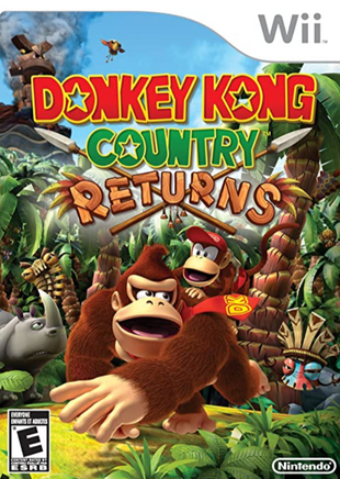 After 14 years, Donkey Kong Country has returned with an all-new banana-hoarding adventure only on Wii!! Donkey Kong makes his triumphant return by going back to his running and jumping roots in an all-new barrel-blasting, rail-riding and ground-pounding adventure! The Donkey Kong Country series comes to life on Wii in lushly rendered environments that will have you running left to right, hunting high and low and blasting front to back to scour eight worlds in search of hidden coins, puzzle pieces, and Donkey Kong's stolen banana hoard. Diddy Kong joins the adventure with his own moves, special combo abilities and a series-first two-player cooperative mode. When playing alone, Donkey Kong carries Diddy Kong on his back, giving a jet powered boost to his jumps. In co-op play a second-player can also join on any level, controlling Diddy Kong independently or riding on DK's back to power through stages together, allowing players of all ages and skill levels to experience the fun of Donkey Kong Country Returns. The Wii Remote and Nunchuk controllers put the brute force of a great ape in the palms of your hands. Shake the Wii Remote and Nunchuk controller s to slap the ground, stunning enemies, demolishing objects and activating explosive switches. A quick shake while running sends Donkey Kong power rolling through lines of enemies. Add in skillful jumps, grabbing and throwing objects and clinging to vines on walls and ceilings, and you'll be racing through stages like a true king of the jungle.