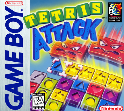 An early entry in Nintendo's Puzzle League series, Tetris Attack is a tile-matching action puzzle game. As in the original Tetris, the game is played on a rectangular field that fills with blocks, but similarities end there. In Tetris Attack, the blocks push up from the bottom of the screen, and players must match three or more in a row or column to remove them from the field. Matches are made by swapping any two horizontally adjacent blocks, as selected with a zippy cursor. A password system allows players to save their progress. The Game Boy version of Tetris Attack offers five single-player modes: "Endless," "Puzzle," "Stage Clear," "Time Trial," and a competitive mode against a computer player. A two-player competitive mode is available through a link cable connection.