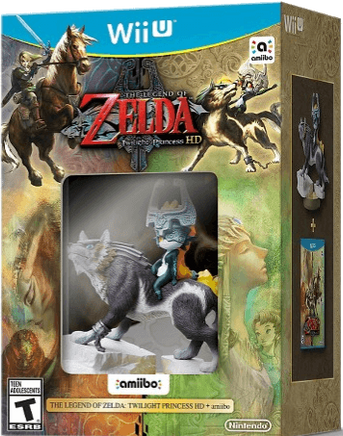 The Legend of Zelda: Twilight Princess HD for Wii U is an enhanced version of the GameCube title featuring HD graphics and features. The Wii U GamePad display provides quick access to a map and inventory, while the controller's gyroscope can be used to aim. Veteran players will find an added challenge in Hero Mode where Link takes double damage from enemies and there are no heart drops. Select amiibo figures are compatible with the game as well; the Wolf Link amiibo that is specifically made for this game unlocks a new level.