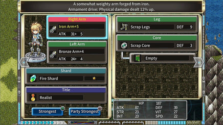 Set out on an adventure to discover Izen's mysterious origins in a sci-fi RPG! Upgrade Izen's abilities with arm/leg parts, core and chips, and activate the armament drive and fight with the support of fairies!