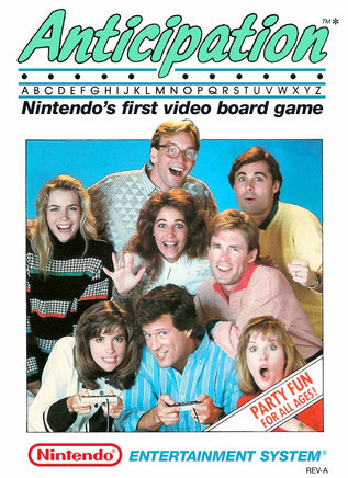 Anticipation is a video board game for one to four players (both computer and human). The object of the game is to be the first to collect a card for each of the four colors on the game board. During each turn the computer will display seemingly random dots, then a pencil starts connecting the dots to form a picture. The first player to correctly identify the picture will earn a card for the color of the picture being drawn. As the picture draws, a dice on the screen will count down from 6 to 1. Whatever value is showing when a player successfully identifies the picture is the number of spaces that players game piece will move on the game board for the next turn. The color of the space the game piece lands on will dictate the category for the next picture to be drawn.