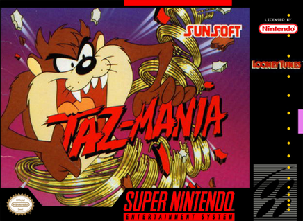 Eschewing the side-scrolling platform setup found in the Genesis version of the game, Taz-Mania for the Super NES is a behind-the-runner racing game in which a very nicely animated Taz walks, runs, jumps, and spins down the highway, attempting to catch a certain number of kiwi birds before time runs out. Hunters Bull Gator and Axl put glue, black holes, and other obstacles in the way, and the game automatically ends if the love-struck Tasmanian She-Devil catches up with our hero. An especially inventive happening occurs when a trembling Wendal T. Wolf jumps on Taz for protection, partially blocking his eyesight (and the gamer's view of the screen). Grunts, groans, and other cartoon-like sound effects offset the disappointingly ordinary music. Gameplay, though suffering a bit from sameness throughout the levels, is fast-paced, challenging, and enjoyable, and definitely makes Taz-Mania worth taking for a spin.