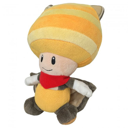 Flying Squirrel Yellow Toad is a form introduced in the Wii U game New Super Mario Bros. U. When he grabs a Super Acorn, Yellow Toad can lightly glide in a similar way to Cape Mario and Raccoon Mario and temporarily cling to walls, blocks and pipes. The heroes are also able to air jump while gliding, shaking the Wii U GamePad.