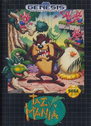 Sporting beautiful cartoon-like graphics from the 1991 animated series and an offbeat jazz soundtrack, Taz-Mania is a platform game suffering from short, unimaginative levels and an incredible number of blind jumps. Players control the whirling dervish through six multi-staged areas of jumping and spinning action, from an abandoned mine to a mouse-infested jungle. In addition to his patented spin attack, Taz can throw items at enemies and belch fire after consuming red peppers. While enemies are few and far between, hazards such as quicksand, slippery icebergs, and bottomless pits make for a devilish mix of trial-and-error gameplay.