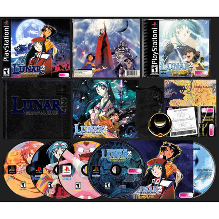 The enchanting world of LUNAR comes to life once more in the enhanced PlayStation game console version of the classic RPG sequel. Join freewheeling Hiro and the adorable Ruby, a thousand years after the events of LUNAR: Silver Star Story, as they work to unlock the secrets of the Blue Spire... and the strange young girl they found within it! But be careful - dark forces are trying to revive the evil Zophar, and immerse LUNAR in darkness forever. Journey to distant lands in the search of the Goddess Althena, who may be the only one powerful enough to stop Zophar. Along to way, you'll meet exciting new characters, fight vividly animated monsters, traverse snow-covered mountain peaks, and crawl through slimy dungeon depths as you wind your way toward the terrifying climax! LUNAR 2 features almost an hour of detailed animation sequences and over 90 minutes of dialogue packed onto three CDs... so what are you waiting for? Go ahead, you deserve to be the hero for once!