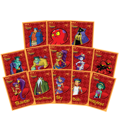 This three card (1 Gold & 12 Silver) trading card set features art from the Shantae: Risky’s Revenge game.