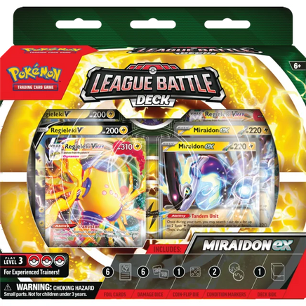 Get Charged Up with Miraidon ex & Regieleki VMAX! The Miraidon ex League Battle Deck is the first League Battle Deck to be released for the Scarlet & Violet Series. It features multiples of Miraidon ex, Regieleki V, and Regieleki VMAX—key cards of the Miraidon ex archetype.