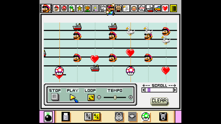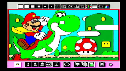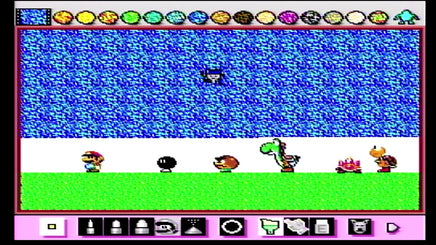 Mario Paint is an educational game that allows anyone to create simple pictures, paint over black and white pictures, or free draw their own using the specially developed SNES Mouse. The player can also create their own piece of music using a selection of notes and themes, create greeting cards and animations, or play a game of "Gnat Attack", where they use the mouse to control a swatter to swat flies.
